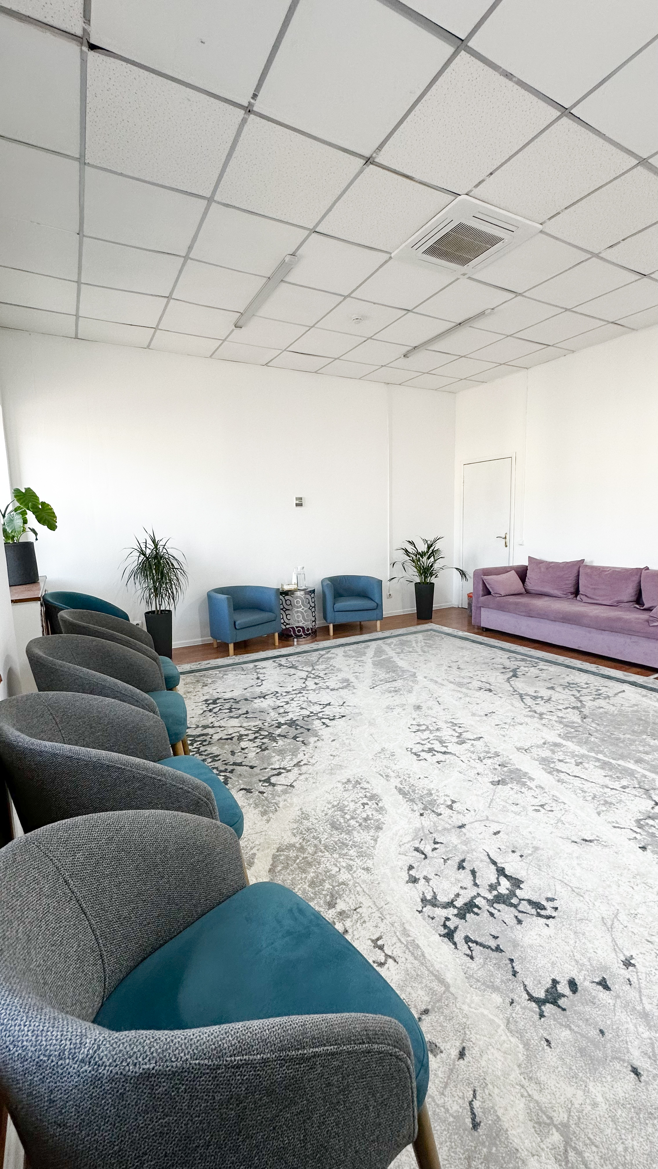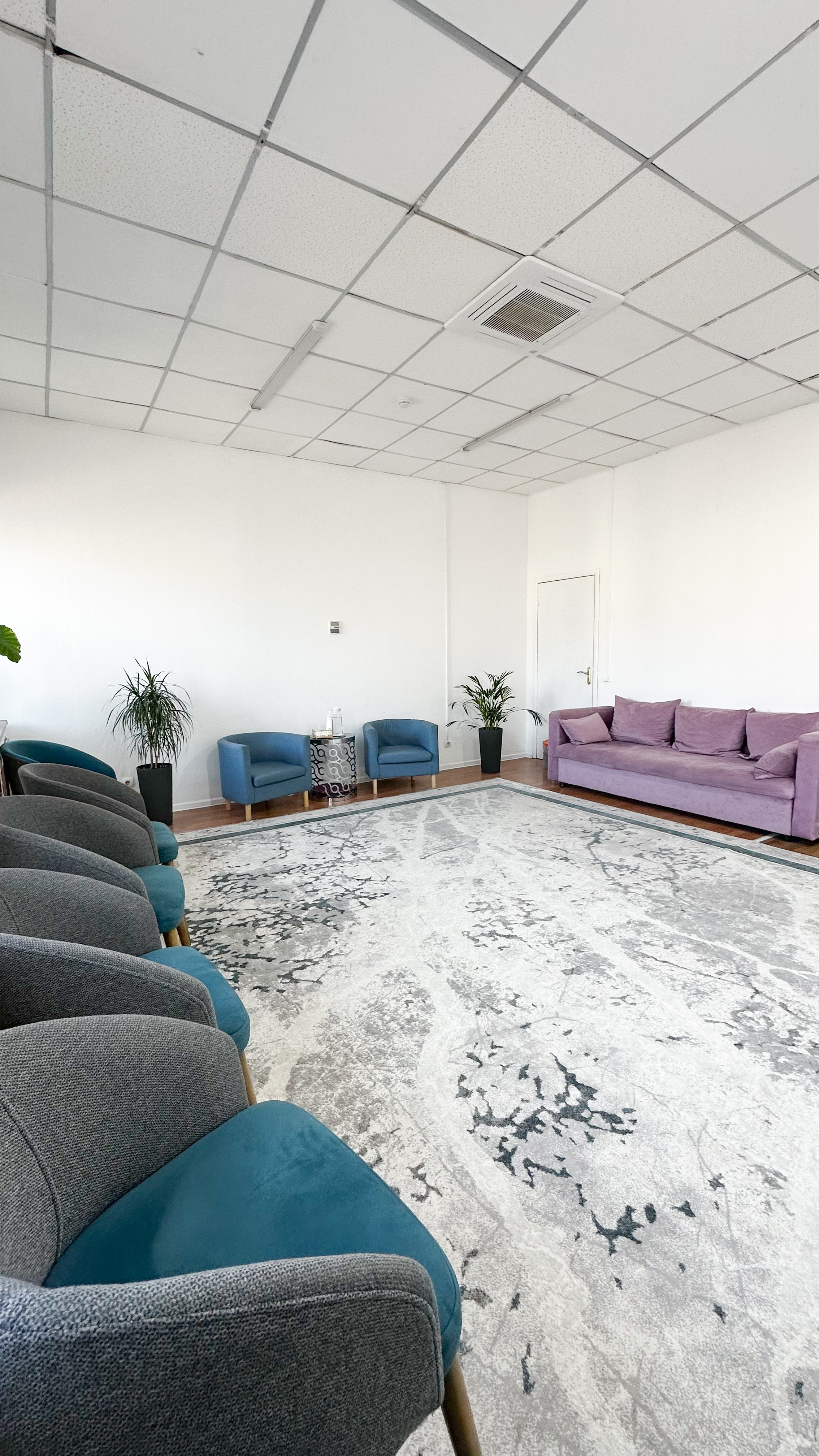 диван, 2 кресла, стулья, маркерная доска, ковер, кушетка раскладная по запросу, проектор по запросу