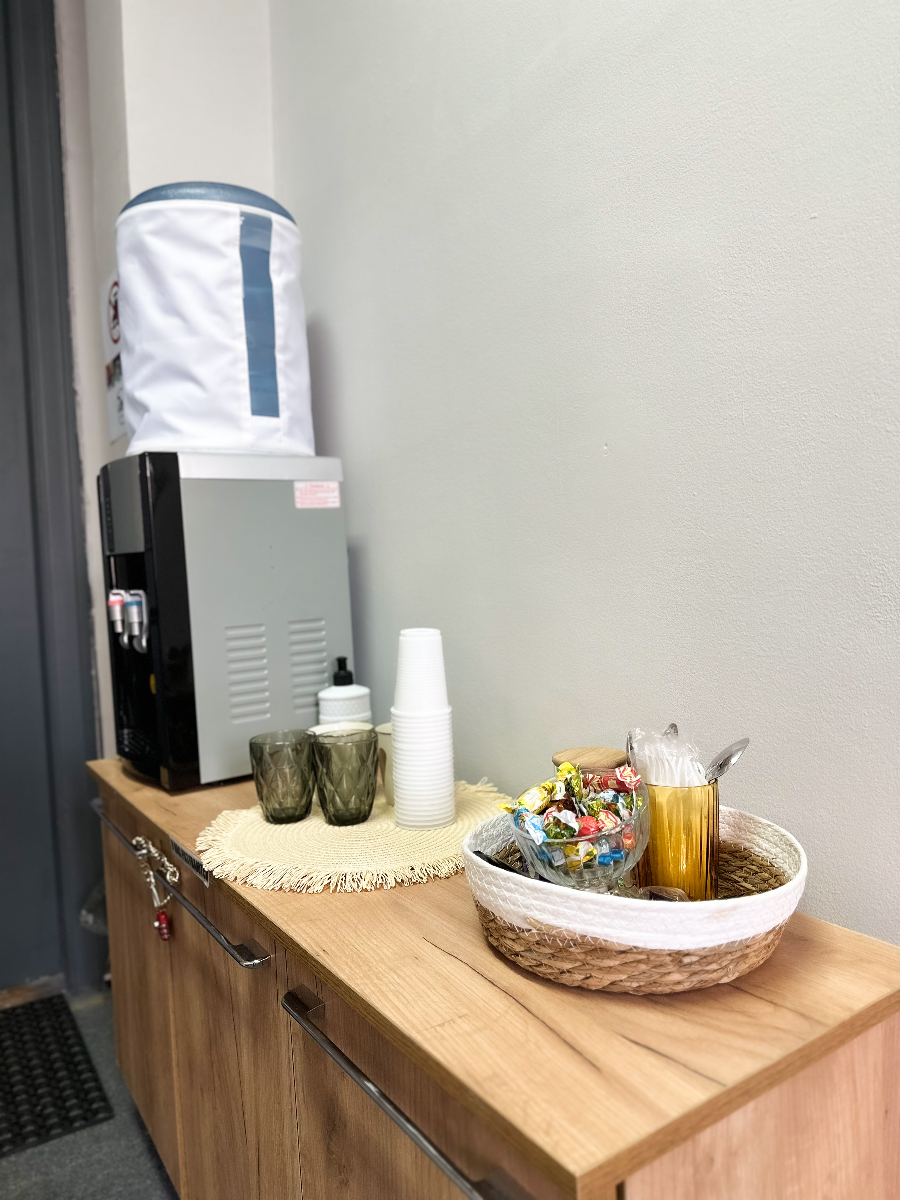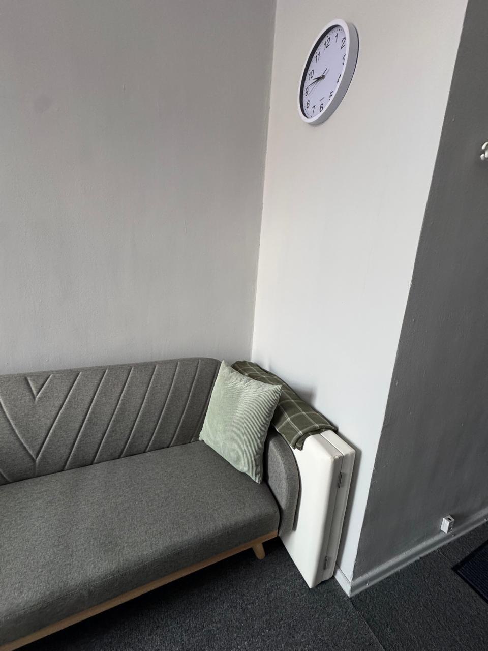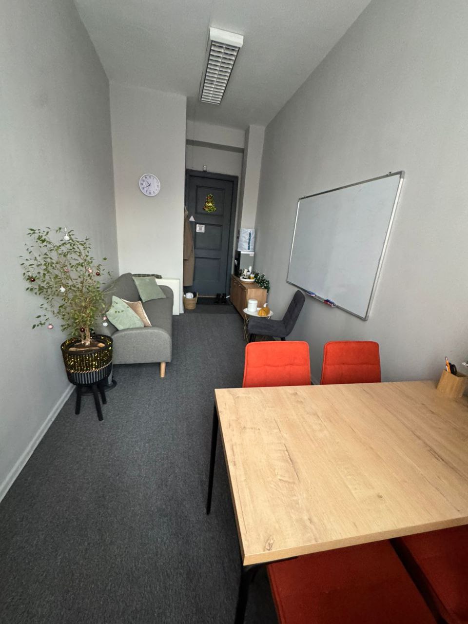 диван, стол, 5 стульев, ковролин, кольцевая лампа, маркерная доска
