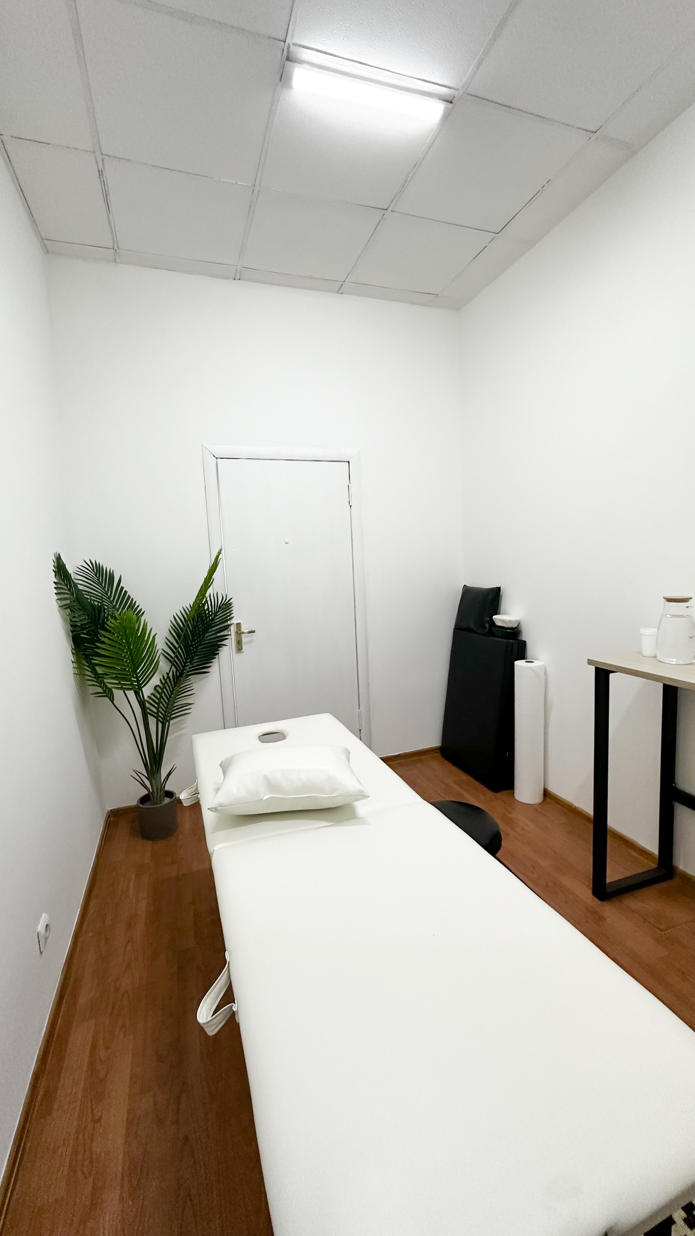 В кабинете имеется кушетка в разложенном виде, одноразовая простынь, подушки, плед, вода, стаканчики. Рядом с кабинетом есть зона для чаяпития, чай и вода доступны для клиентов бесплатно. Также рядом с кабинетом есть раковина и санузел.